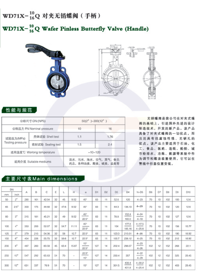 主要生产包括蝶阀、闸阀、止回阀、平衡阀、排气阀、水力控制阀、调流调压阀、消防阀门等,公司所有产品严格依据国标、部标、韩标、美标等标准制造生产,各个制造阶段中严把质量关,做到自检、首检、抽检、终检四检不漏,达到产品出厂合格率100%。公司现有制造设备:数控车床、镗床、铣床、钻床、卧式车床等50余台。各种检测能力完善,能为用户提供优质可靠地产品。