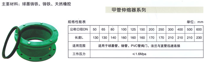 甲管伸缩器也称伸缩节、膨胀节、补偿器、伸缩接头。伸缩器在 范围内可轴向伸缩,也能在 的角度内克服管道对接不同轴向而产生的偏移,能的方便阀门管道的安装与拆卸,在管道允许伸缩量中可以自由伸缩,一旦越过其 大伸缩量就起到限位,管道的 运行。主要为管道 运行,具有以下作用:补偿吸收管道轴向、横向、角向热变形;吸收设备振动,减少设备振动对管道的影响;吸收地震、地陷对管道的变形量。