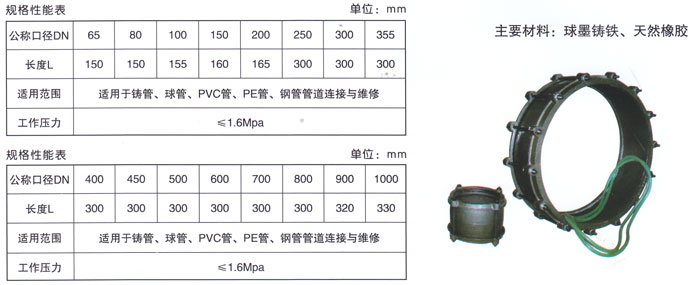适用范围:适用于铸管、球墨管、PVC管、PE管。