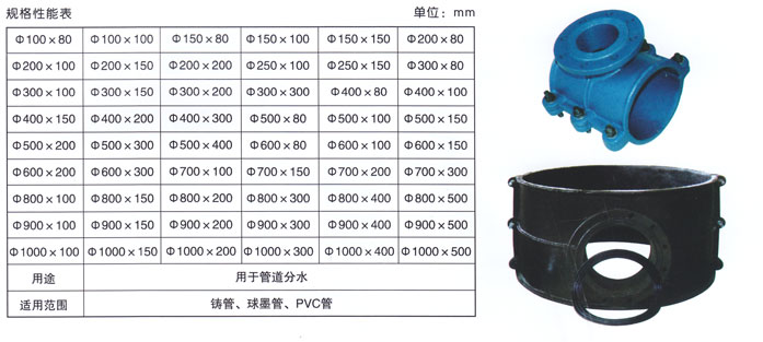 主要材料:球墨铸铁、 橡胶 用途:用于管道分水